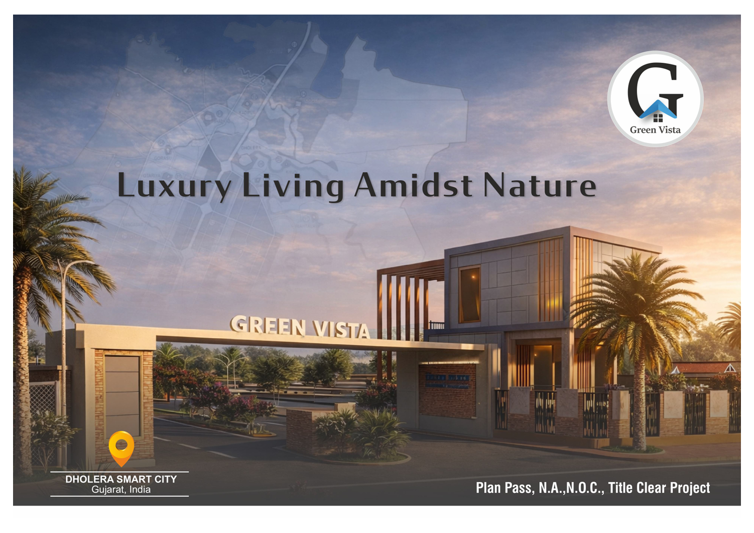 Green Vista Residential Township - Dholera is a premium residential township located in the fast-developing Dholera SIR, India’s first government-backed smart city. Spread across approximately 6 acres with around 207 well-planned residential plots, the project is designed for investors and end-users seeking long-term appreciation, security, and modern infrastructure.